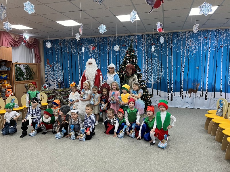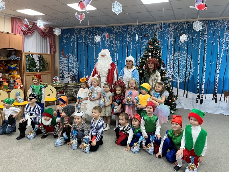 В средней группе прошел новогодний утренник. Дети пришли на утренник в новогодних костюмах, весёлые в предвкушении праздника. С появлением Деда Мороза и Снегурочки начался настоящий праздник с песнями и танцами, хороводами вокруг ёлки. После представления дети читали стихи Деду Морозу и Снегурочке, фотографировались с персонажами, получали новогодние подарки.